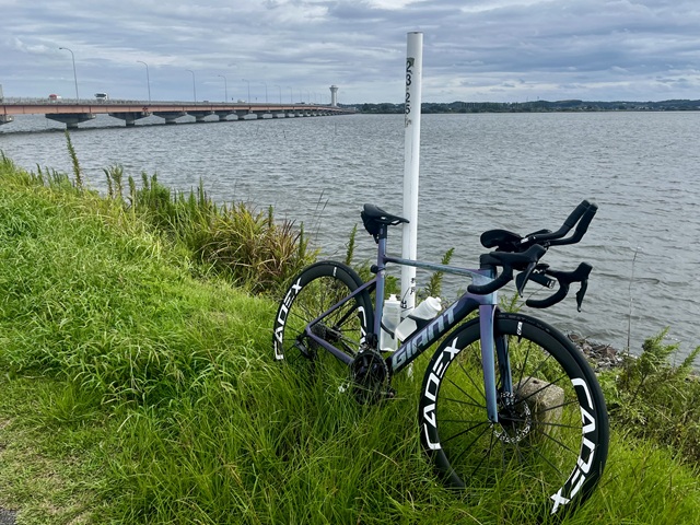 おにぎりとドリンクを補給してDHバーの突き出し量を調整してラップを切って再出発。