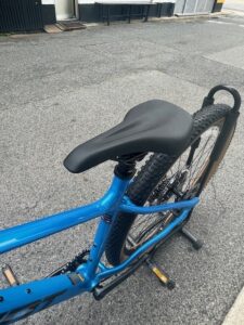 手元のレバーでシートの上げ下げができるドロッパーシートポストも付いているので、色々な場面で楽に乗ることができます!