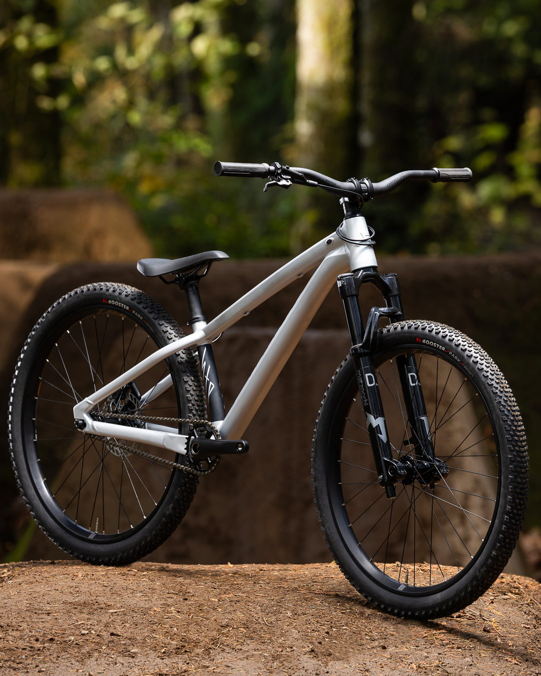 ダートジャンプバイクの流れを汲むジオメトリは、低めのスタンドオーバーハイトと低重心設計によって、バランスと安定性を向上。チェーンステー長とホイールベースを短めに設定することで、フロントアップしやすく、アグレッシブなバイクコントロールを可能にしています。