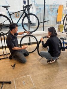 今回の参加者の方はチューブレスのタイヤを使っている方でしたので、チューブレスタイヤのパンク修理の方法をお伝えしました!